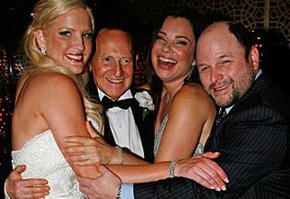 Bride brynne gordon and groom geoffrey edelsten pose for a photograph after their 2009 wedding.